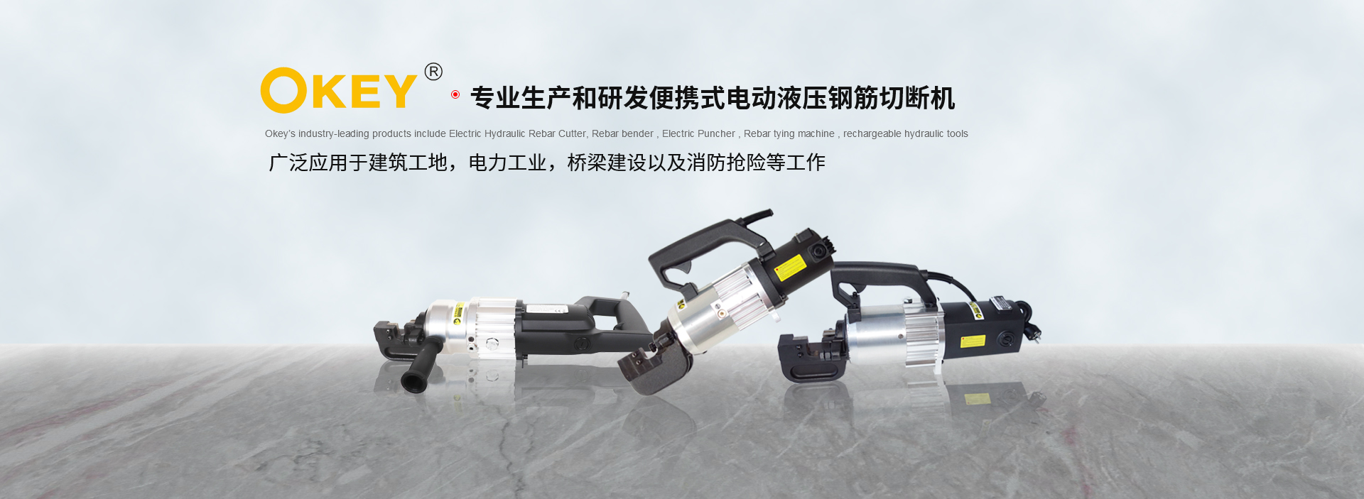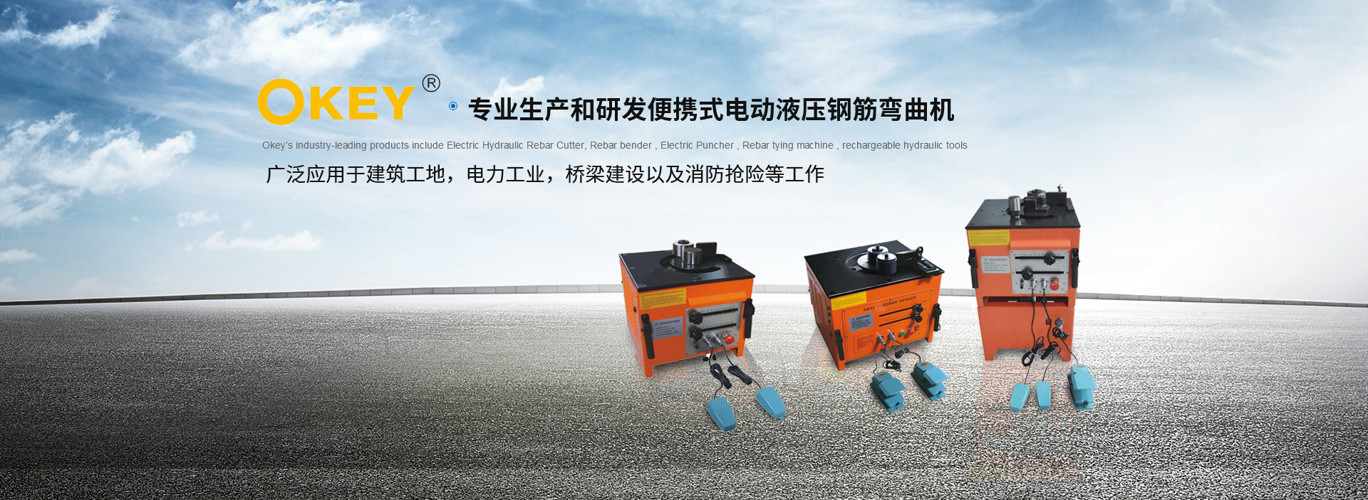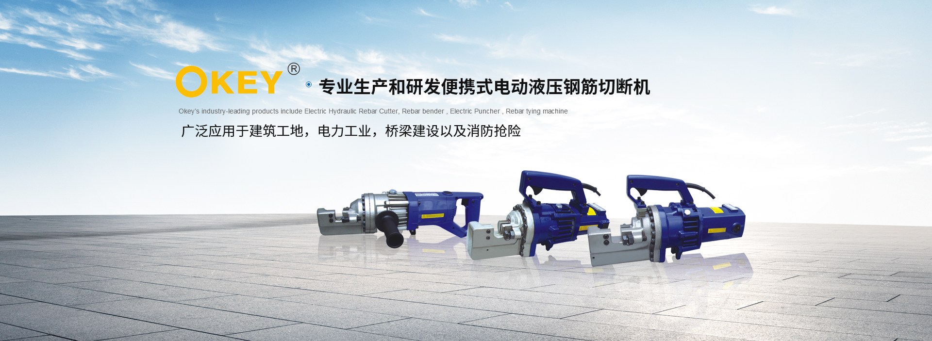 本公司專業生產和研發便攜式電動液壓鋼筋切斷機、彎曲機、沖孔機、液壓泵以及充電式液壓工具、全自動鋼筋捆扎機等系列產品,其廣泛應用于建筑工地,電力工業,橋梁建設以及消防搶險等工作。